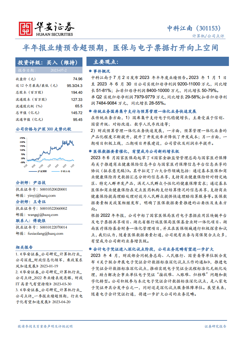 半年报业绩预告超预期,医保与电子票据打开向上空间
