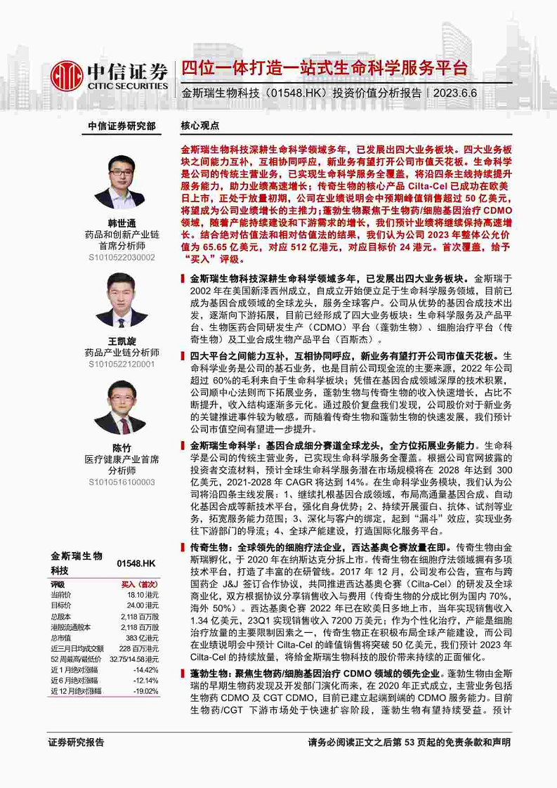 金斯瑞生物科技-1548.HK-投资价值分析报告:四位一体打造一站式生命科学服务平台