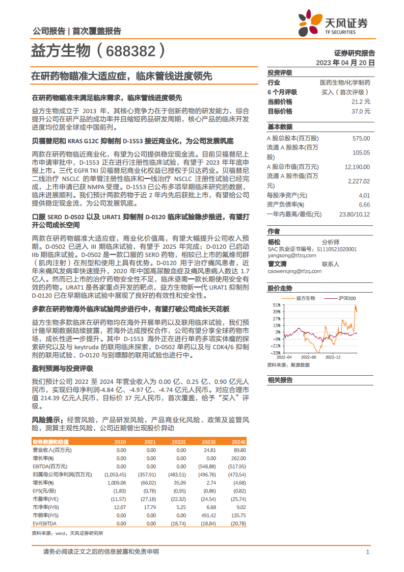 益方生物(688382):在研药物瞄准大适应症,临床管线进度领先