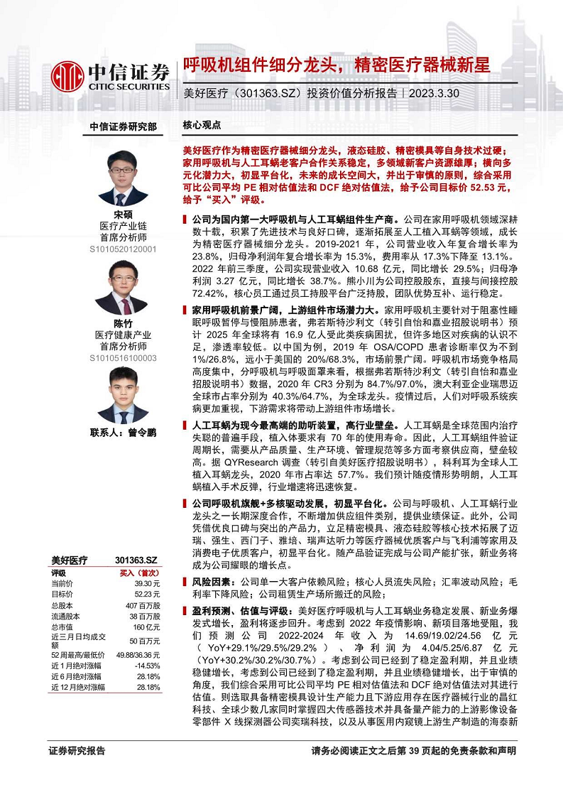 美好医疗-301363-投资价值分析报告:呼吸机组件细分龙头,精密医疗器械新星
