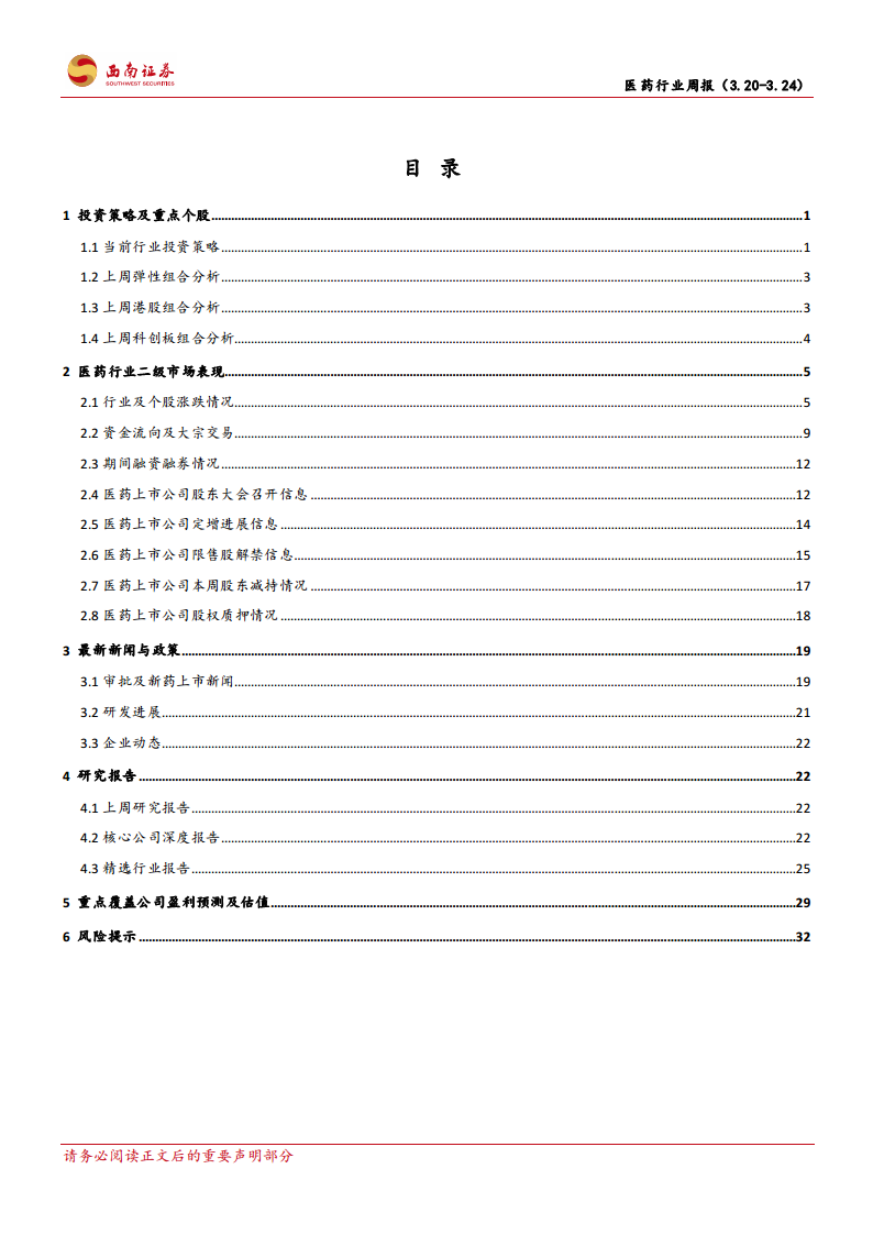 报告提示了医药行业面临的潜在风险,包括药品降价预期风险、医改政策执行进度低于预期风险以及研发失败的风险。这些风险因素可能对医药行业的未来发展和公司业绩产生不利影响,投资者需保持警惕。