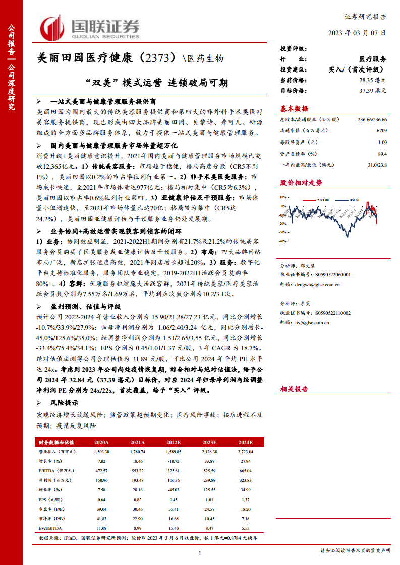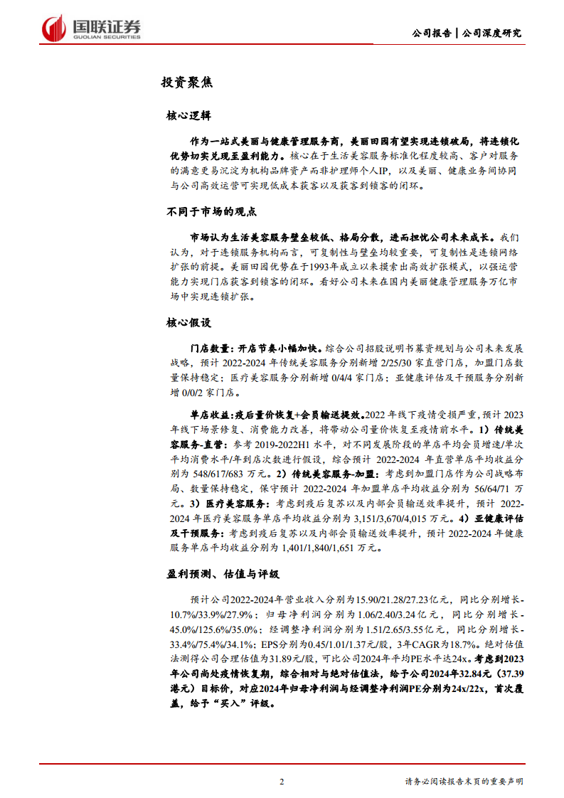 美丽田园医疗健康凭借其在传统美容和非手术类医美市场的领先地位,以及在亚健康管理领域的积极布局,构建了独特且具有协同效应的“双美”业务模式。公司通过高效的门店扩张策略、精细化的数字化运营和稳定的专业服务团队,有效实现了客户的获取与留存。尽管面临宏观经济和监管政策等外部风险,但其在万亿级美丽与健康管理服务市场中的深耕和持续创新,使其具备显著的增长潜力。基于对公司未来盈利能力的预测和估值分析,本报告首次覆盖并给予“买入”评级,建议投资者关注其长期发展价值。