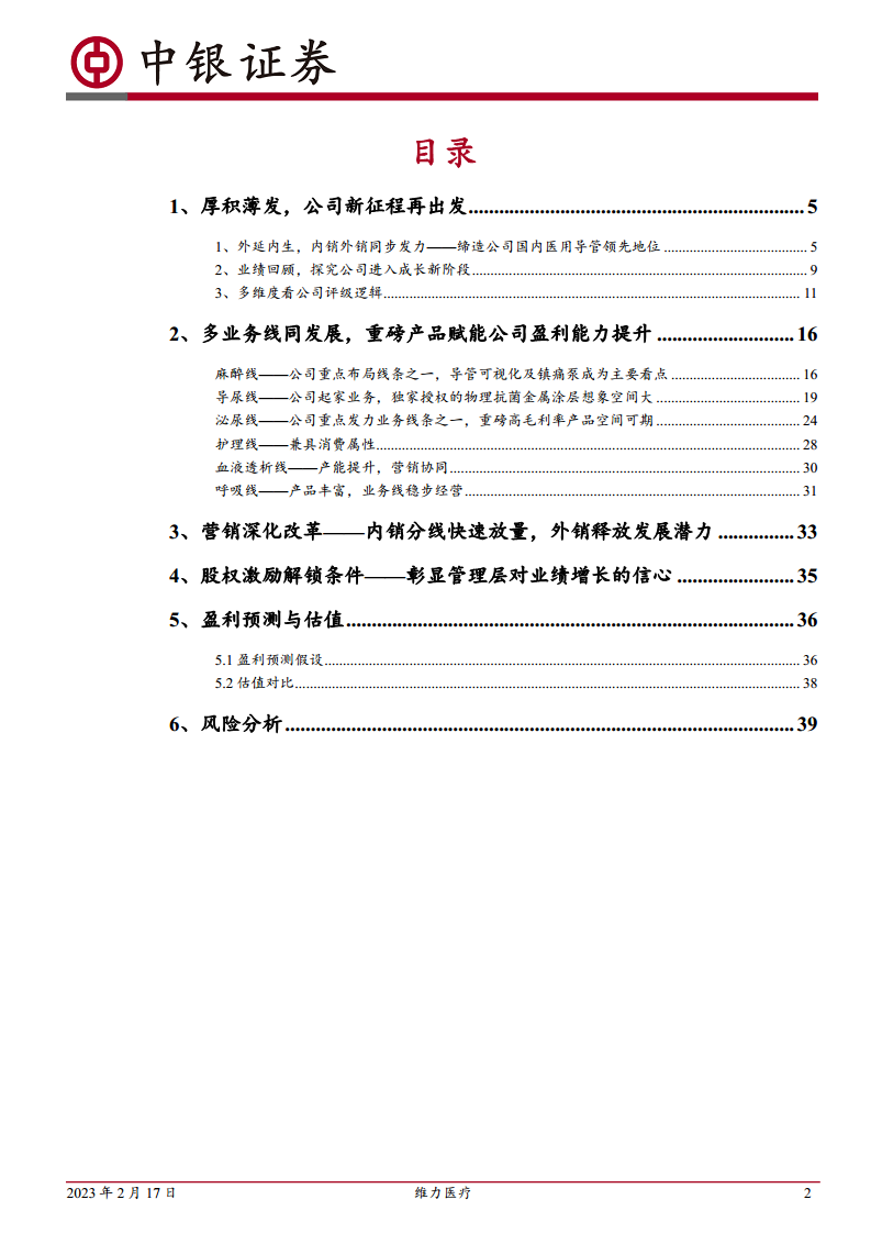本报告核心观点指出,维力医疗作为国内医用导管领域的领军企业,正通过创新驱动、产品升级、营销改革及自动化生产等策略,积极转型并进入新的发展周期。公司在医用导管这一基础性医疗耗材市场中已形成显著优势,并有望凭借其在研发、规模化生产和市场拓展方面的能力,持续扩大市场份额,实现从低值耗材向中低值耗材企业的产业升级。