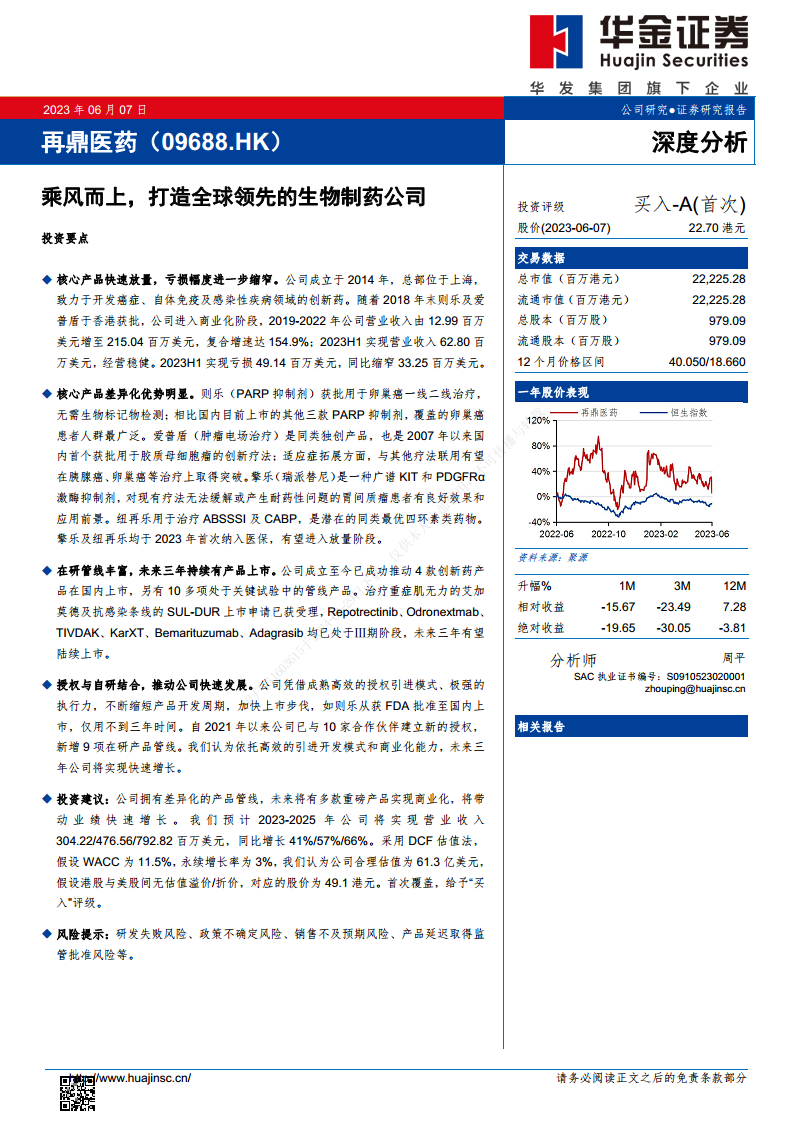 再鼎医药(9688)乘风而上,打造全球领先的生物制药公司