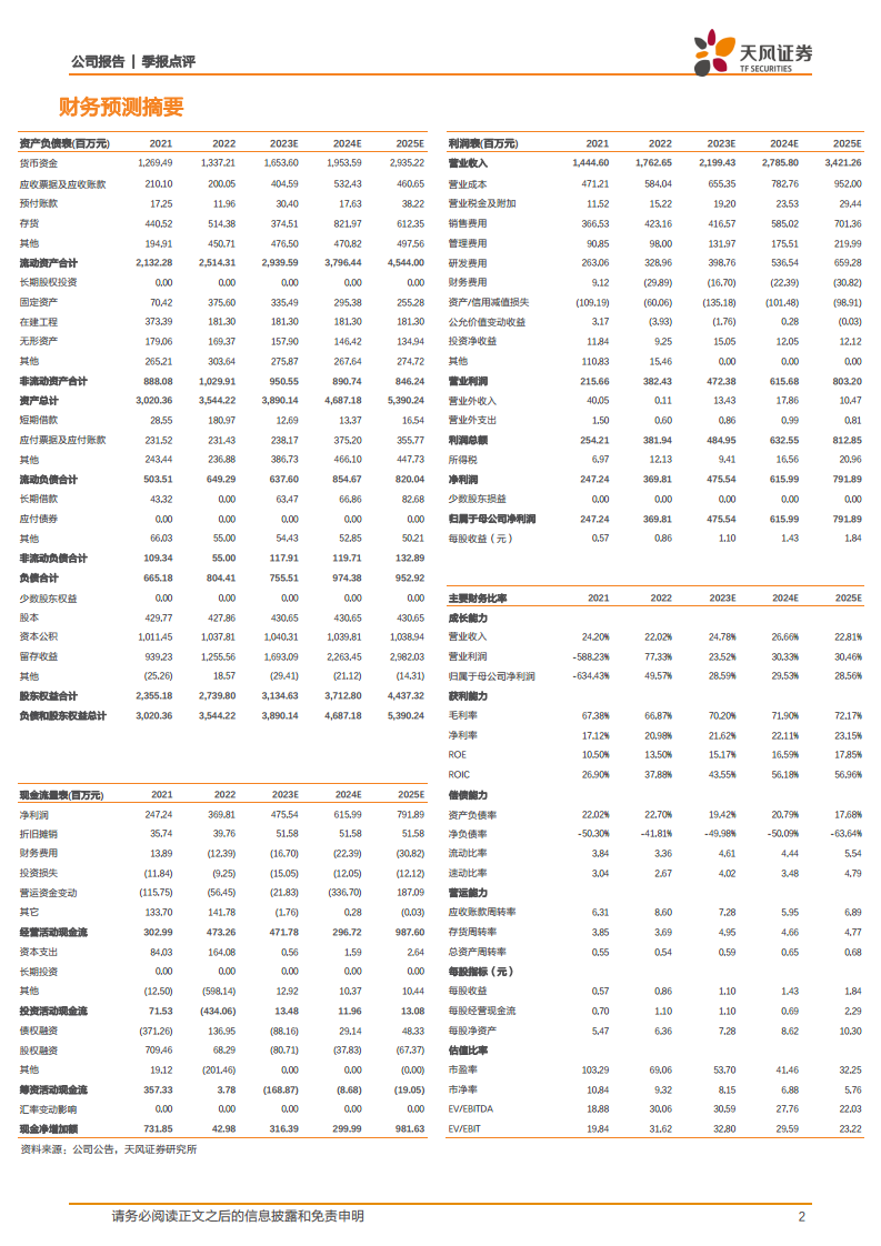 公司预计2023-2025年营业收入分别为21.99亿元、27.86亿元和34.21亿元,归母净利润分别为4.76亿元、6.16亿元和7.92亿元,维持“买入”评级。潜在风险包括产品研发不及预期、营销团队稳定性风险以及新产品获批及市场推广进度不及预期。