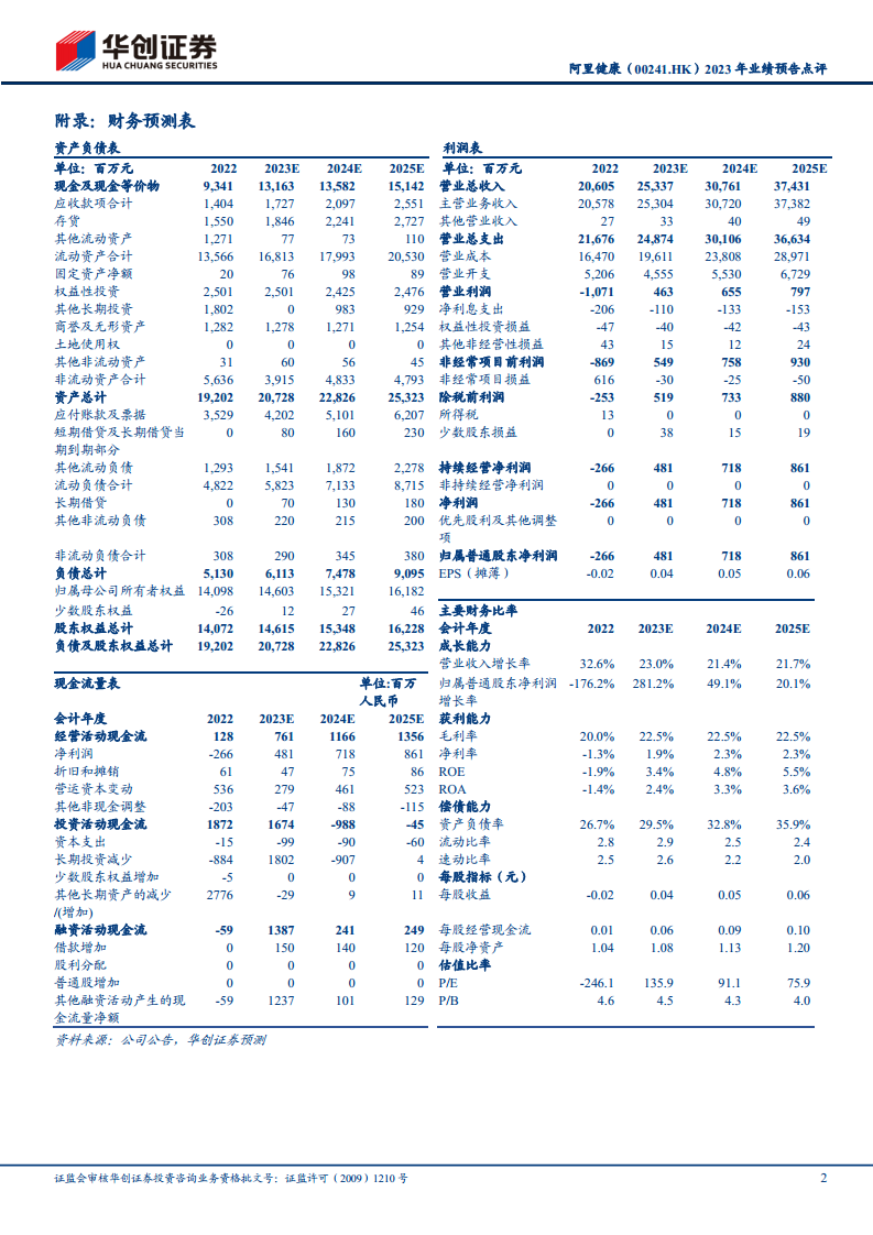 华创证券维持对阿里健康的“推荐”评级,并基于最新的业绩情况调整了2023-2025财年的营业收入和归母净利润预测,预计公司将持续实现稳健的业绩增长。根据P/S估值法,给予公司2024财年2.8倍目标P/S,对应目标价7.24港元。报告同时提示了网售处方药监管趋严和业务扩张不及预期等潜在风险,建议投资者关注。
