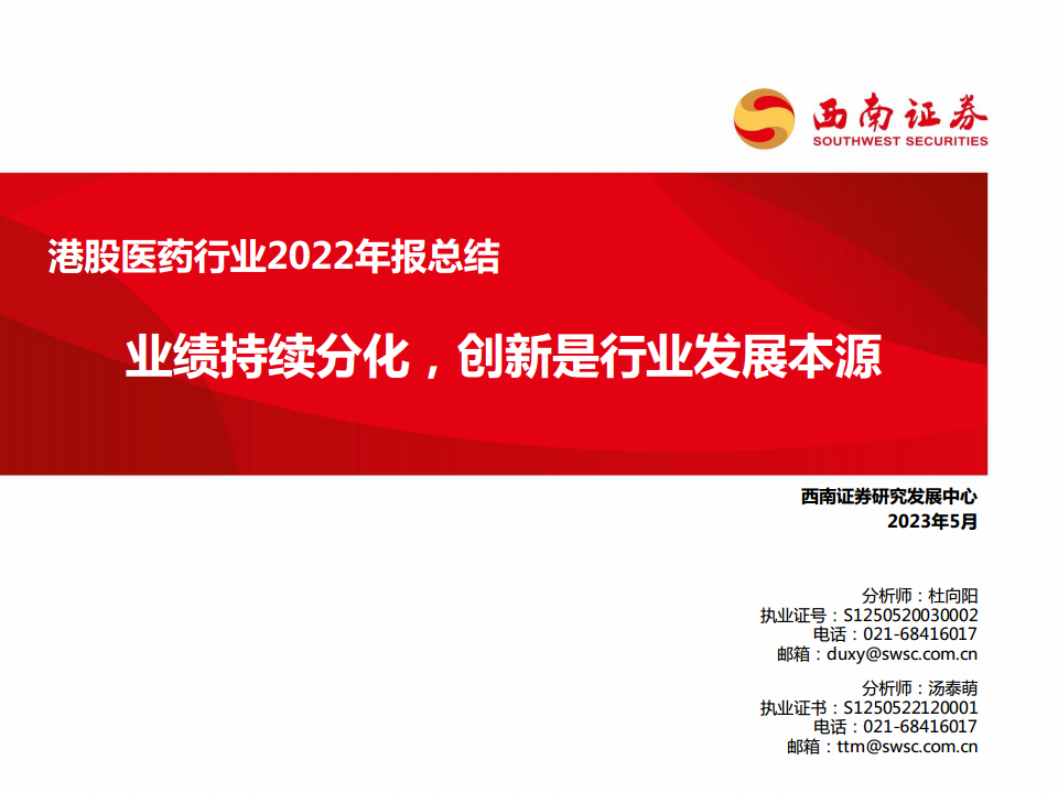 港股医药行业2022年报总结:业绩持续分化,创新是行业发展本源