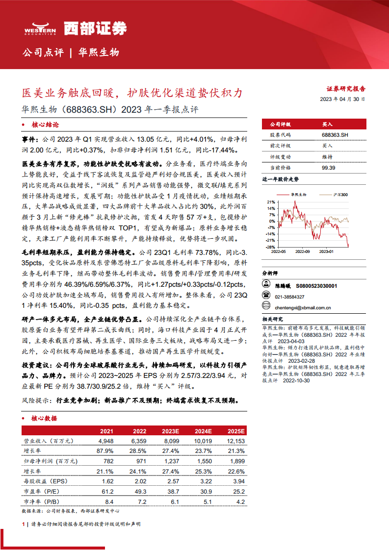 公司持续深化“研产一体”的全产业链平台体系,积极布局胶原蛋白、再生医学和细胞培养基等新兴赛道,海口科技产业园的开园标志着其在医疗器械、再生医学和国际业务领域的战略布局进一步深化。尽管毛利率短期承压,销售费用投入增加,但整体盈利能力保持稳定。基于其作为全球玻尿酸行业龙头的地位和持续的研发投入,分析师维持“买入”评级,并对未来三年的业绩增长持乐观预期,预计2023-2025年EPS将持续增长。
