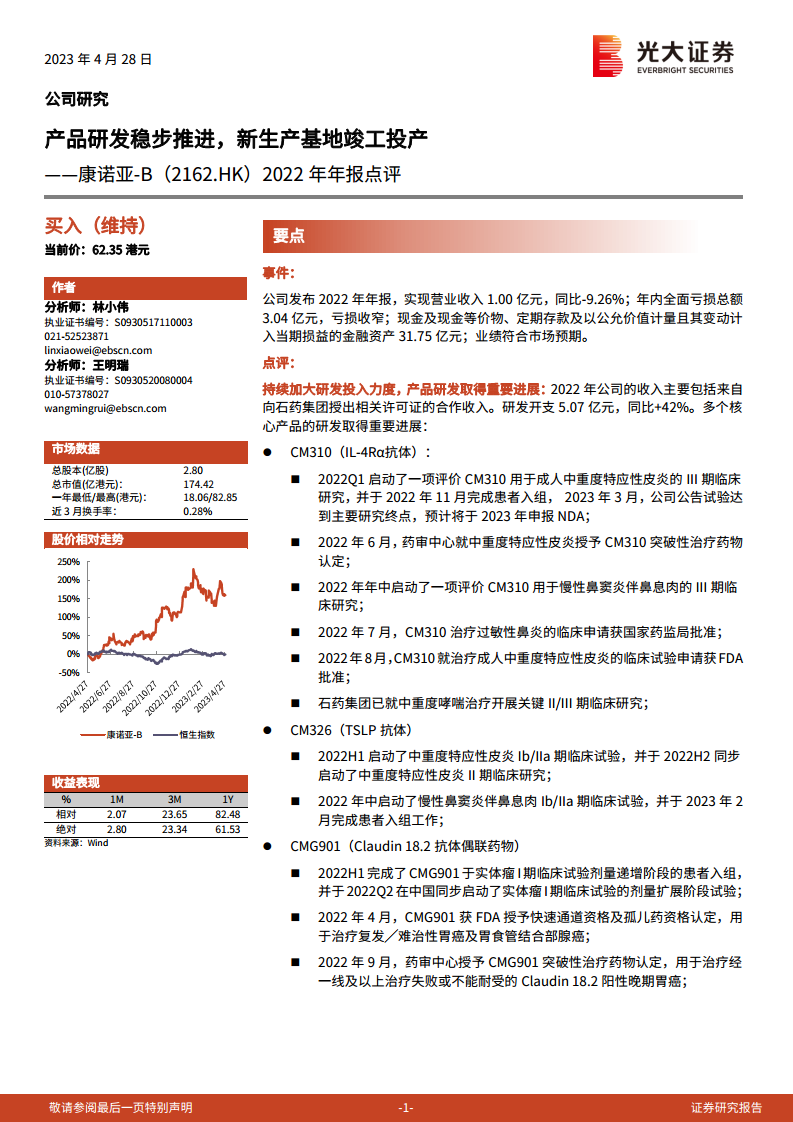公司成都新基地一期已于2022年底竣工投产,新增16,000升产能,所有基地均符合国家药监局及FDA的c GMP规定。这一举措为CM310等核心产品的未来商业化生产奠定了坚实基础,标志着公司从研发阶段向商业化生产迈出了关键一步,为后续产品上市和市场拓展提供了保障。