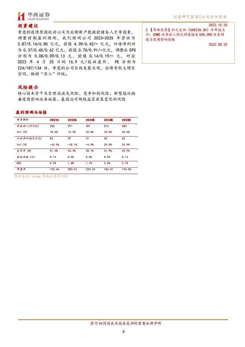 和元生物在2023年一季度面临宏观经济下行、下游融资困难及CDMO业务项目延期等多重挑战,导致营收和利润短期承压。然而,公司基因治疗CRO业务保持稳健增长,且临港新产能的开业和即将投产,以及持续加大的研发投入,为公司未来业绩恢复高速增长奠定了坚实基础。尽管分析师下调了短期盈利预测,但基于公司在基因治疗CRO/CDMO领域的战略布局和长期发展潜力,维持了“买入”评级,表明市场对公司未来增长前景的信心。投资者需关注核心人才、市场竞争、疫情及政策变化等潜在风险。