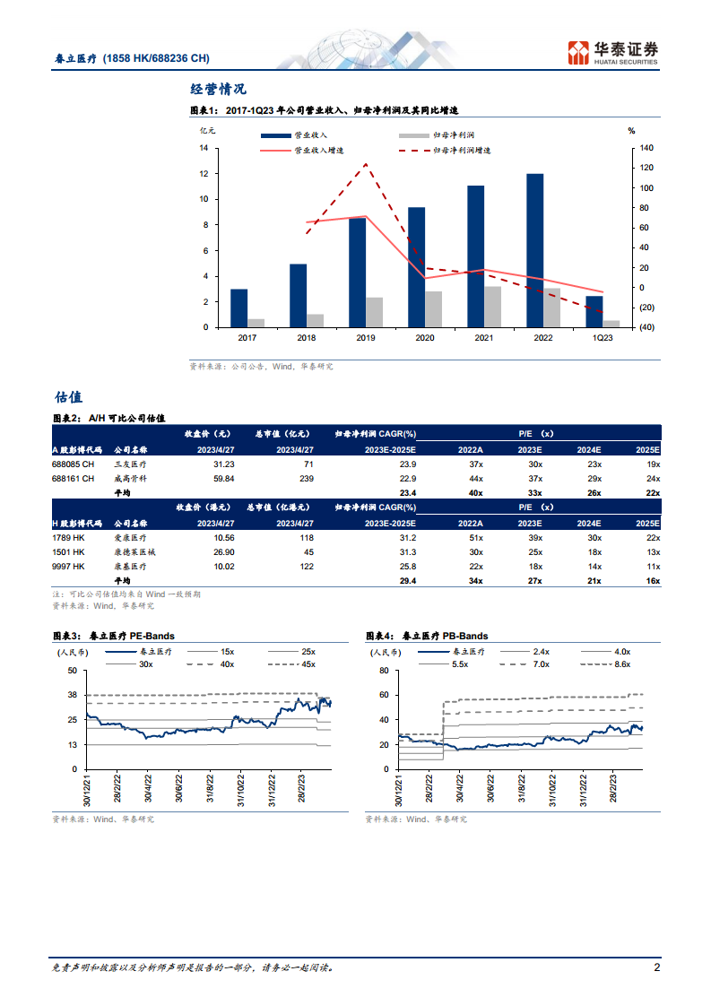 华泰研究对春立医疗全年业绩恢复持乐观态度,预计2023-2025年归母净利润将分别实现22.88%、28.62%和26.29%的同比增长,EPS分别为0.98/1.27/1.60元。公司通过关节产品集采后的放量、脊柱业务的稳健增长以及运动医学新产品的快速放量,构建了多元化的增长驱动力。基于此,华泰研究维持了“买入”评级,并上调了A股目标价至41.33元人民币(对应2023年42x PE)和H股目标价至30.13港元(对应2023年27x PE),体现了对公司长期发展潜力和市场竞争力的信心。
