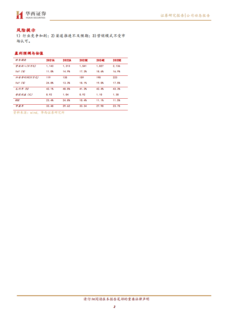 登康口腔在2023年第一季度表现出色,营收和归母净利润均实现稳健增长,分别达到3.43亿元(+10.65%)和0.32亿元(+13.54%)。公司凭借“冷酸灵”等多元品牌布局、持续的研发投入和创新的营销策略,巩固了其在口腔清洁护理市场的领先地位,尤其在抗敏感细分领域占据线下市场第一。尽管期间费用率略有上升,但毛利率和净利率均有所提升,显示出良好的盈利能力和费用控制效率。展望未来,公司受益于中国口腔护理市场的巨大潜力,并通过线上线下协同发展、高端市场拓展以及口腔医疗美容布局,预计2023-2025年营收和利润将保持双位数增长。基于此,报告给予登康口腔“买入”评级,但同时提示了行业竞争加剧、渠道推进不及预期及营销模式不受市场认可等潜在风险。