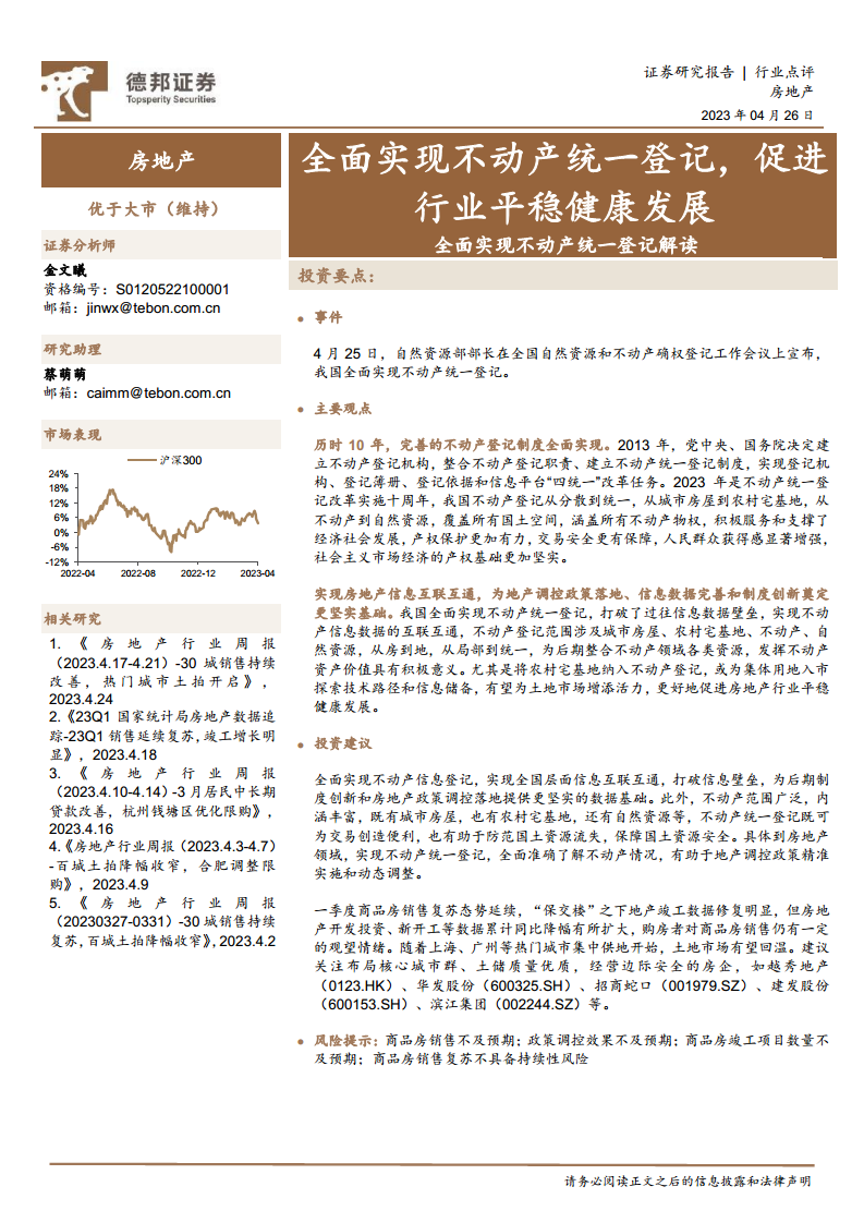 房地产:全面实现不动产统一登记解读-全面实现不动产统一登记,促进行业平稳健康发展