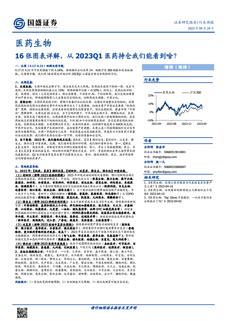 2023Q1医药持仓分析与市场展望