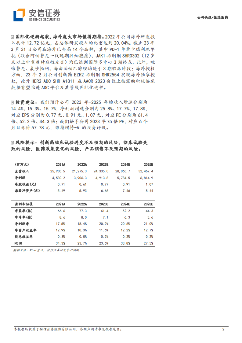 恒瑞医药(600276):业绩迎来拐点,创新与国际化持续推进