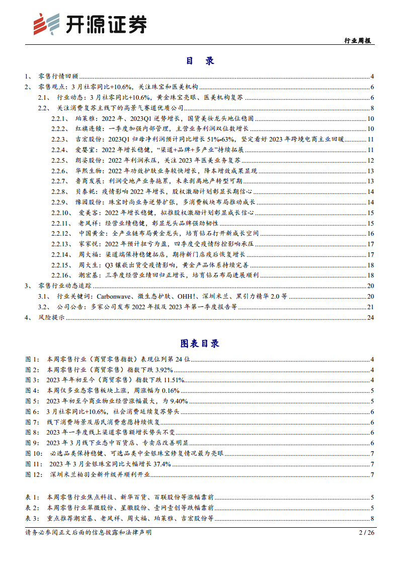 商贸零售行业周报:3月社零同比+10.6%,关注黄金珠宝、医美机构复苏