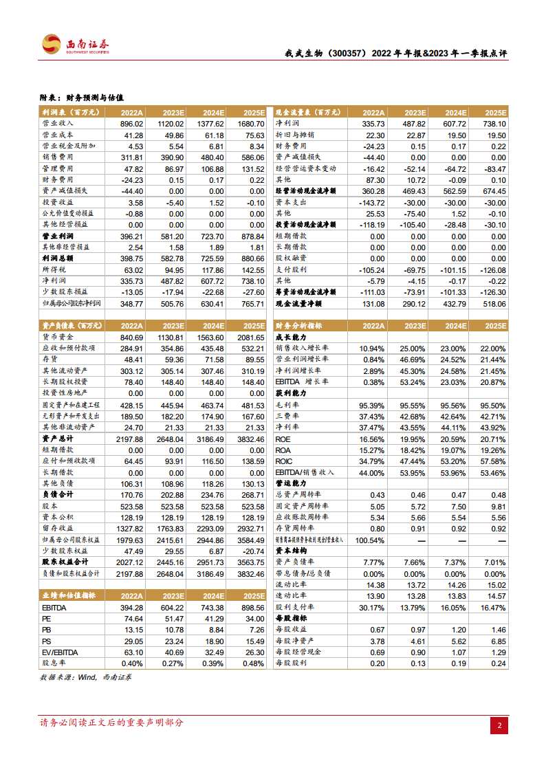 分析师预计我武生物2023-2025年净利润将分别达到5.1亿元、6.3亿元和7.7亿元,对应动态PE分别为51倍、41倍和34倍,并维持“买入”评级。然而,公司面临新患入组或不达预期、产品研发或不及预期、市场竞争加剧以及行业政策变化等风险。