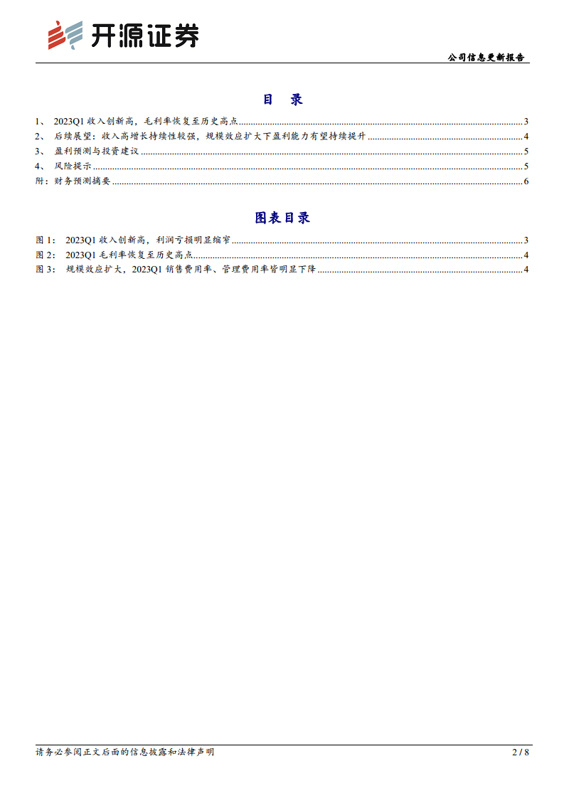 国际医学在经历2022年的挑战后,于2023年第一季度实现了显著的业绩反弹,收入创历史新高,亏损大幅收窄,毛利率恢复至高点。这主要得益于疫情影响的消退、新建院区的投入运营以及现有院区业务的优化升级。展望未来,公司收入高增长的持续性较强,规模效应将推动盈利能力持续提升。基于对公司未来业绩的积极预测和其在医疗服务领域的增长潜力,报告维持了“买入”评级,但同时提示了医保控费和住院量爬坡速度不及预期的风险。