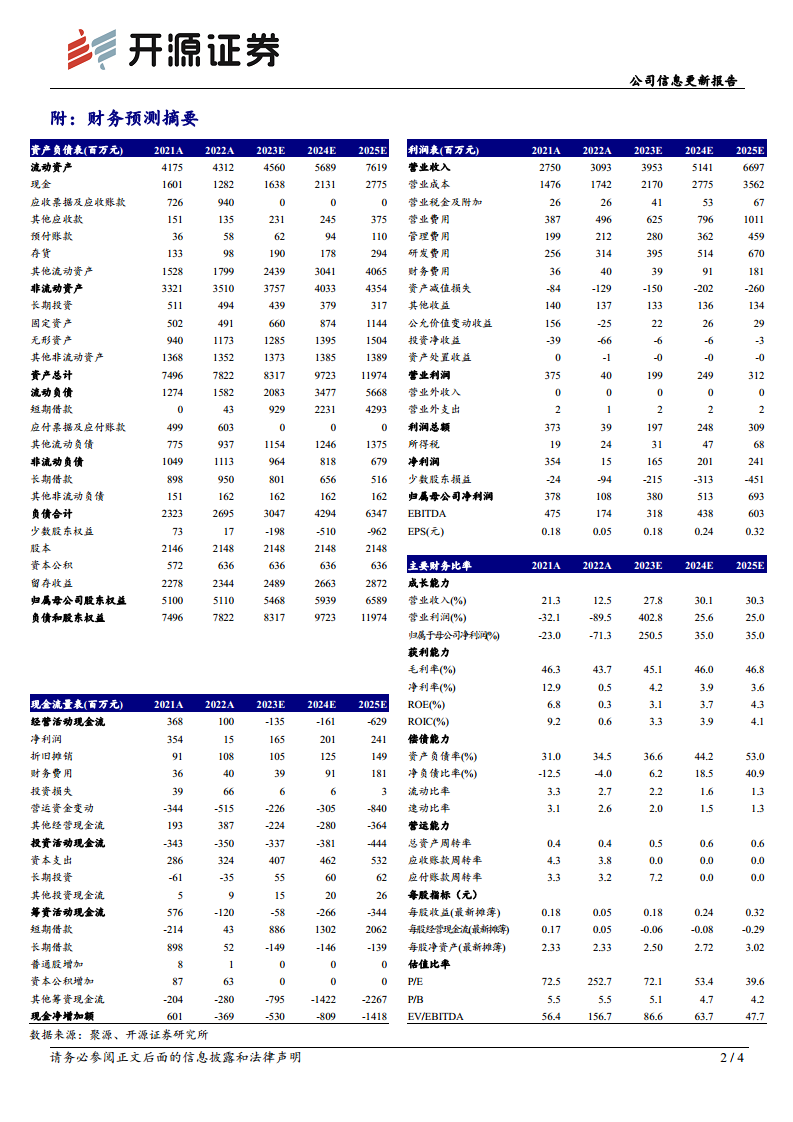 公司业绩增长主要由互联网医疗健康业务的快速扩张和大型项目的显著增加驱动。同时,国家政策对人工智能赋能医疗应用场景的支持,以及卫宁健康在AI技术方面的领先优势,为其打开了新的成长空间。尽管2022年利润受订单延迟和研发投入影响有所下降,但预计未来几年归母净利润将实现高速增长,显示出强劲的复苏和发展潜力。