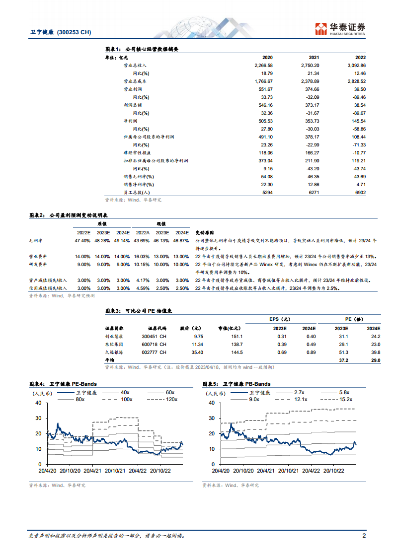 卫宁健康在2022年面临疫情带来的严峻挑战,导致归母净利润大幅下滑和经营性现金流承压,但公司营业收入仍保持正增长,展现出其业务的韧性。展望未来,华泰研究预测公司2023年盈利将实现显著改善,并在2024-2025年持续增长。这主要得益于公司“1+X”战略下WiNEX核心产品的持续落地和市场拓展,巩固了其在医疗信息化领域的领导地位。同时,互联网医疗创新业务虽然短期内仍处于亏损状态,但其高速增长的收入预示着未来亏损有望收窄,并推动公司业务结构转型升级。鉴于卫宁健康在市场中的领先地位和WiNEX产品的巨大推广潜力,华泰研究维持其“增持”评级,并上调目标价至15.12元。投资者需密切关注WiNEX的推广进度以及市场竞争态势。