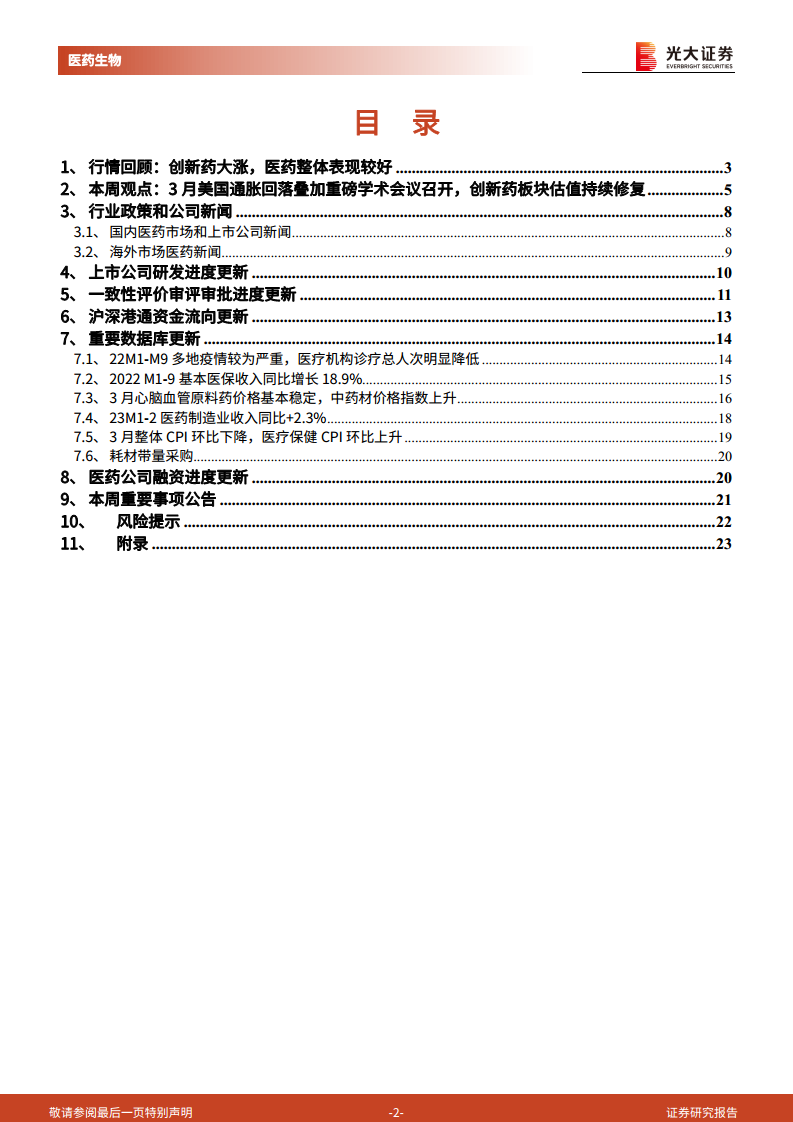 本报告核心观点指出,2023年3月美国通胀超预期回落,叠加重磅学术会议(如AACR和ASCO)的密集召开,为创新药板块带来了持续的估值修复。宏观经济层面,尽管美国核心通胀仍具粘性,但通胀回落预期和潜在的经济衰退交易使得作为风险资产的创新药板块受益。政策环境的边际转暖,特别是对高临床价值创新药的鼓励,进一步消除了估值压制因素,预示着创新药市场将从同质化竞争转向以临床价值为导向的决胜阶段。