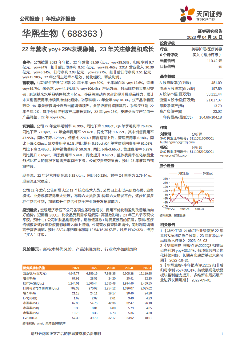 华熙生物(688363):22年营收yoy+29%表现稳健,23年关注修复和成长