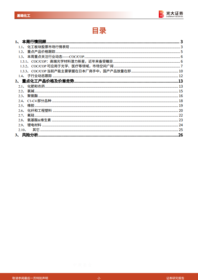 基础化工行业周报:COC、COP国产突破放量在即,应用于光学、医疗等领域空间广阔