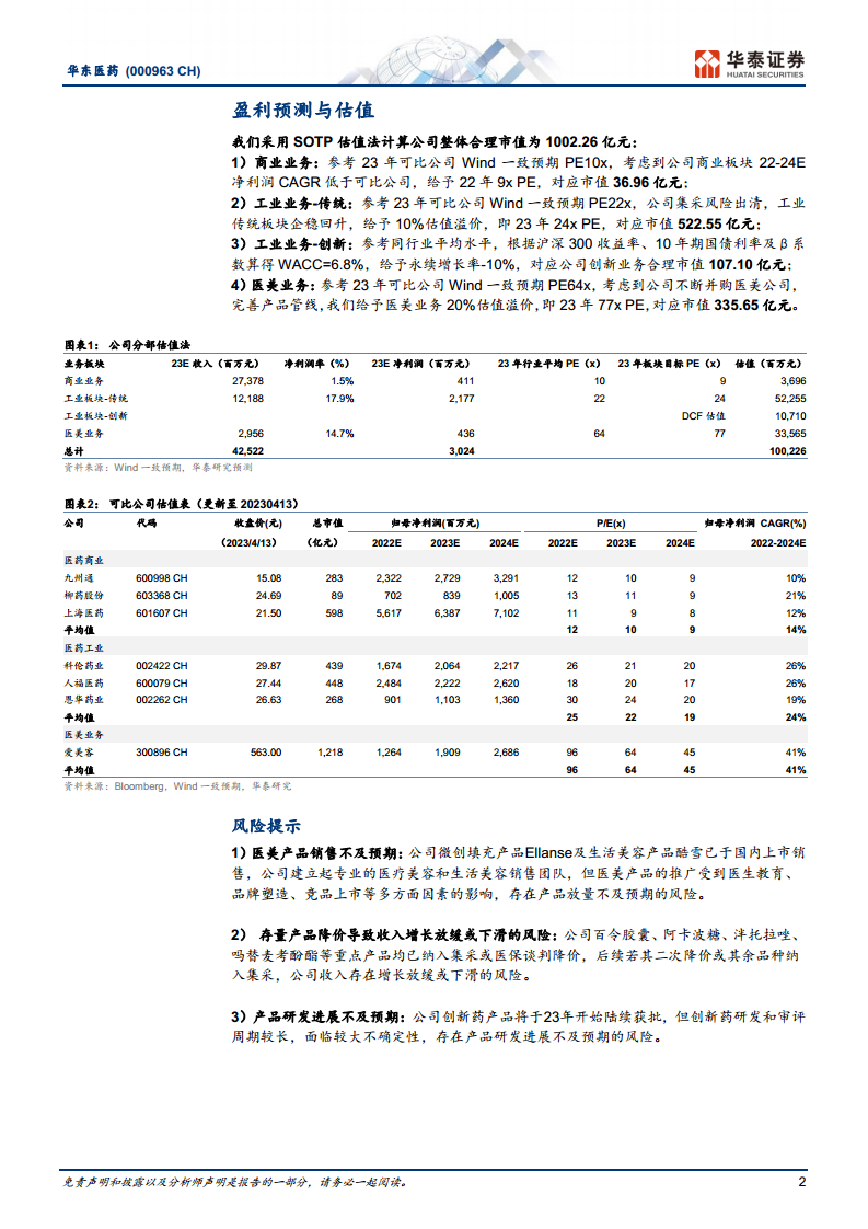 华泰研究采用分部估值法(SOTP)对华东医药进行估值,计算得出公司整体合理市值为1002.26亿元。这种方法能够更准确地反映公司多元化业务的内在价值,避免了单一估值方法可能带来的偏差。