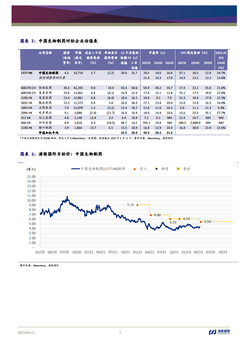 中国生物制药(1177.HK):下调2023-24E盈利预测和目标价