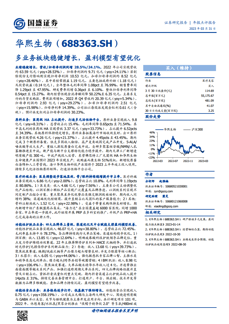 华熙生物(688363):多业务板块稳健增长,盈利模型有望优化