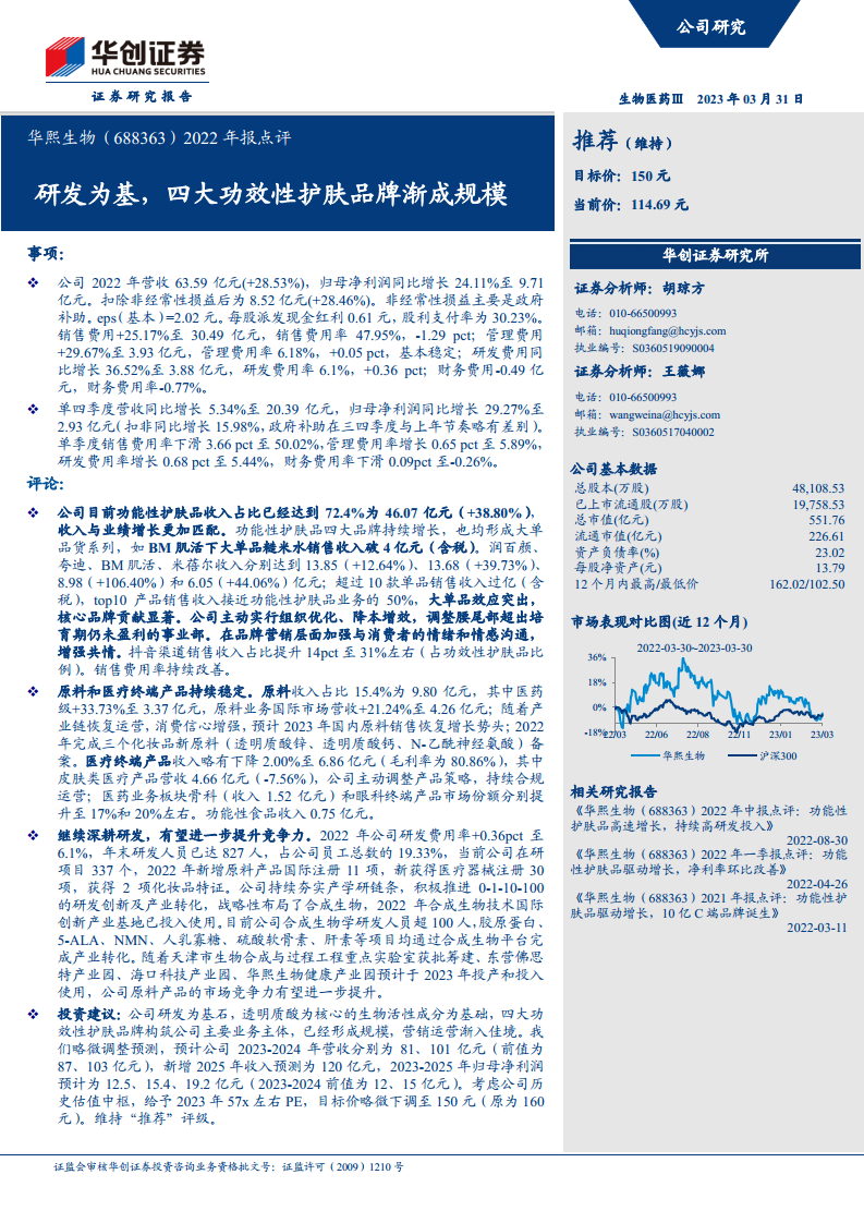 华熙生物(688363)2022年报点评:研发为基,四大功效性护肤品牌渐成规模