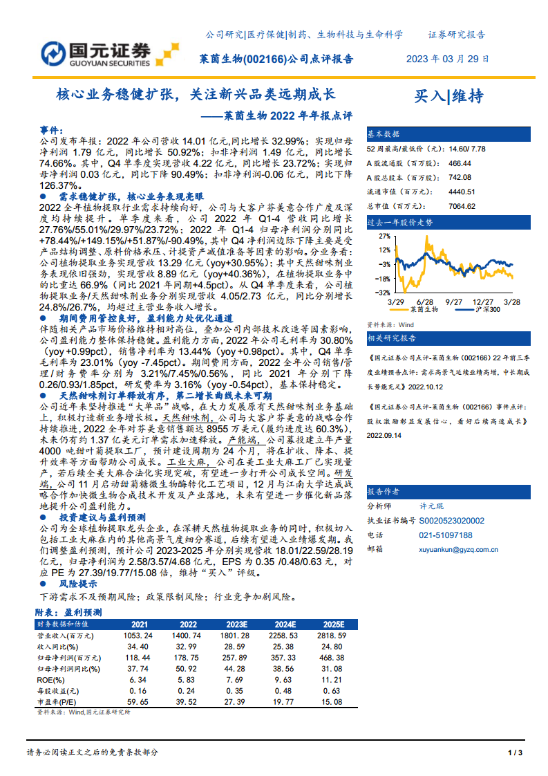 莱茵生物(002166):核心业务稳健扩张,关注新兴品类远期成长