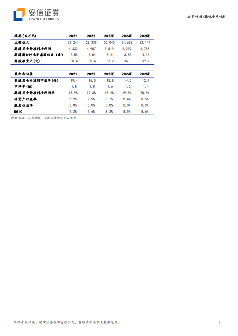 安信证券维持腾讯音乐“买入-B”的投资评级,并基于SOTP(Sum-of-the-Parts)估值法给予12个月目标价34.0港币。