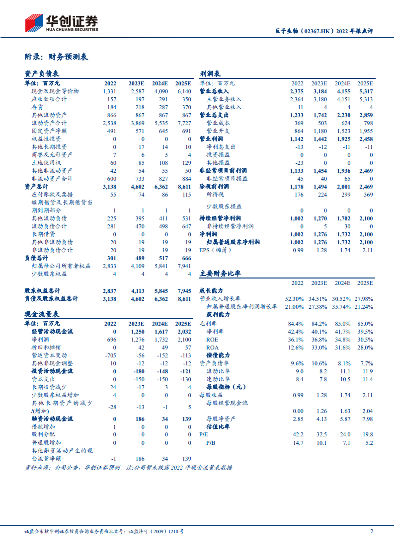 在盈利能力方面,2022年巨子生物的毛利率为84.4%,同比下降了2.8个百分点。报告分析指出,毛利率的下降主要归因于公司在战略层面扩充了产品品类并积极拓展了销售渠道。这意味着公司可能为了市场份额的扩大和新产品的推广,在定价策略或渠道合作上做出了一定的让步,以期实现更长期的增长。与此同时,销售费用率显著抬升了7.6个百分点至29.87%。这一增长主要源于线上直销渠道的快速扩张,包括DTC店铺和电商平台投入的增加。线上渠道的建设和营销推广通常需要较高的前期投入,以获取用户和提升品牌知名度,这在短期内对盈利能力构成压力。受毛利率的略微向下调整和销售费用率的明显抬升的双重影响,公司的净利率下降了11个百分点至42.36%。尽管如此,42.36%的净利率仍处于行业较高水平,表明公司核心业务的盈利能力依然强劲。在费用控制方面,公司管理费用率基本保持稳定,显示了良好的内部运营效率。研发费用率则小幅提升了0.3个百分点至1.9%,这表明公司持续重视技术创新和产品研发,为未来的增长储备了动力,符合其科技驱动型企业的定位。