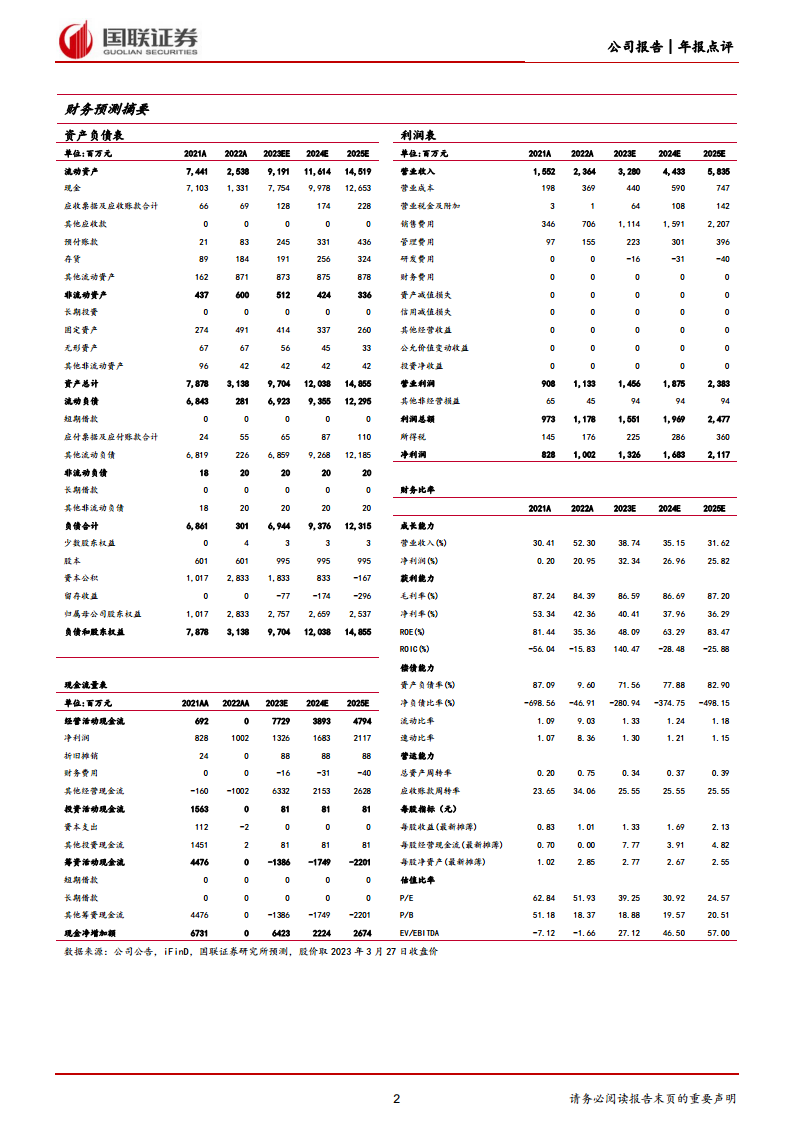 考虑到公司收入略超预期,国联证券上调了盈利预测。预计2023-2024年收入分别为33亿元和44亿元(原预测为30亿元和41亿元),归母净利润分别为13亿元和17亿元(原预测为13亿元和16亿元)。新增2025年收入预测为58亿元,归母净利润为21亿元。未来三年(2023-2025年)收入复合年增长率(CAGR)预计为28%。对应每股收益(EPS)分别为1.33元、1.69元和2.13元,对应市盈率(PE)分别为39倍、31倍和25倍。鉴于公司作为国内重组胶原蛋白专业护肤龙头地位,建议保持关注。