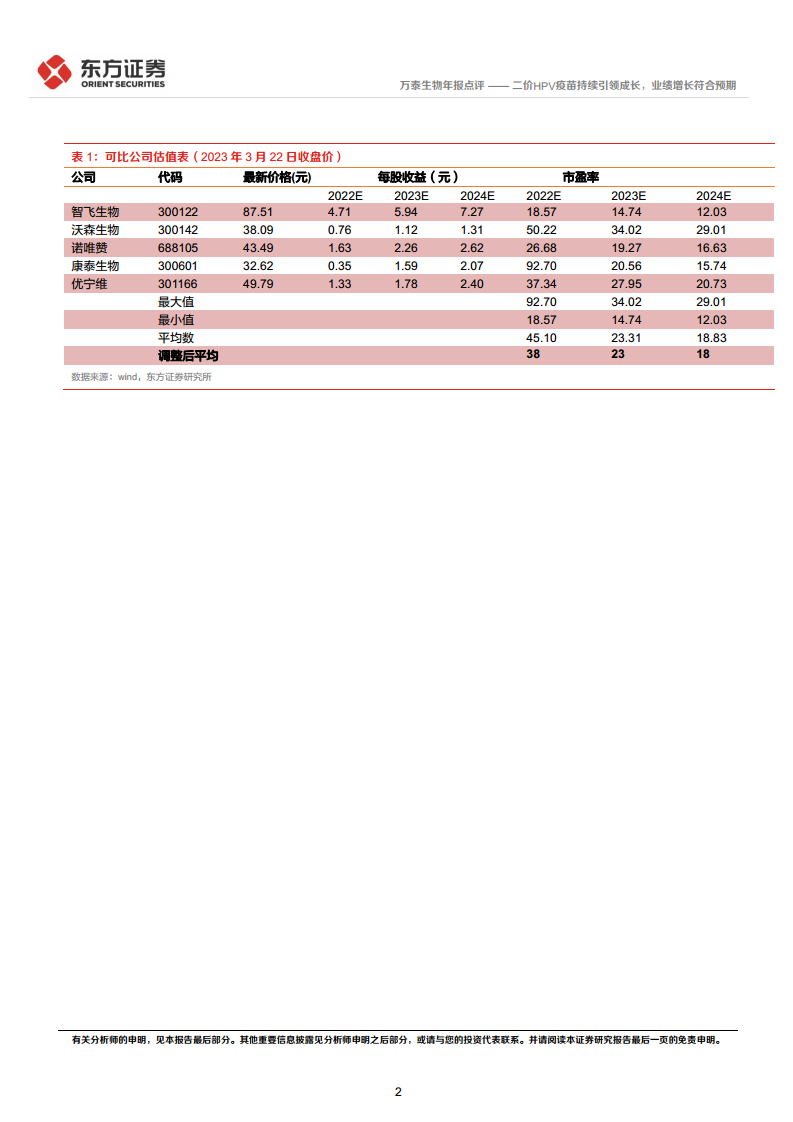 基于年报披露数据,分析师对万泰生物的盈利预测进行了调整,上调了HPV疫苗收入假设,同时调低了新冠产品收入。