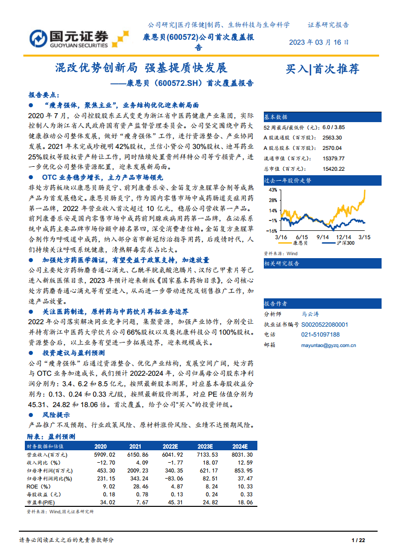- 医药制造(中药饮片及原料药)业务: 预计2022-2024年营收增速分别为27.38%、33.42%、7.24%,受益于中药饮片业务整合和注射用阿奇霉素通过一致性评价。