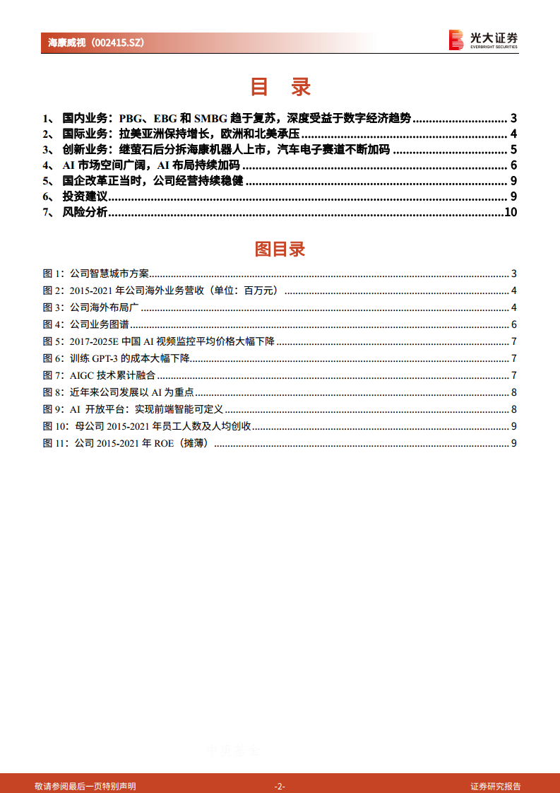 海康威视作为全球智能物联领域的领导者,在数字经济复苏、AI技术浪潮和国企改革的背景下,展现出显著的增长潜力和战略韧性。尽管2022年业绩短期承压,但国内业务的复苏趋势、国际业务在拉美和亚洲的持续增长,以及创新业务(特别是海康机器人分拆上市和汽车电子业务的加码)的强劲表现,共同构成了公司未来发展的核心驱动力。公司在AI领域的深厚布局和持续投入,通过AI Cloud架构和开放平台,有效降低了成本并提升了算法能力,进一步巩固了其核心竞争力。结合国企改革的政策利好和公司自身稳健的经营与盈利能力,海康威视的长期发展确定性强。尽管短期业绩预测有所下调,但报告维持“买入”评级,充分肯定了公司在全球智能物联市场的龙头地位及其在AI和创新业务领域的成长潜力。