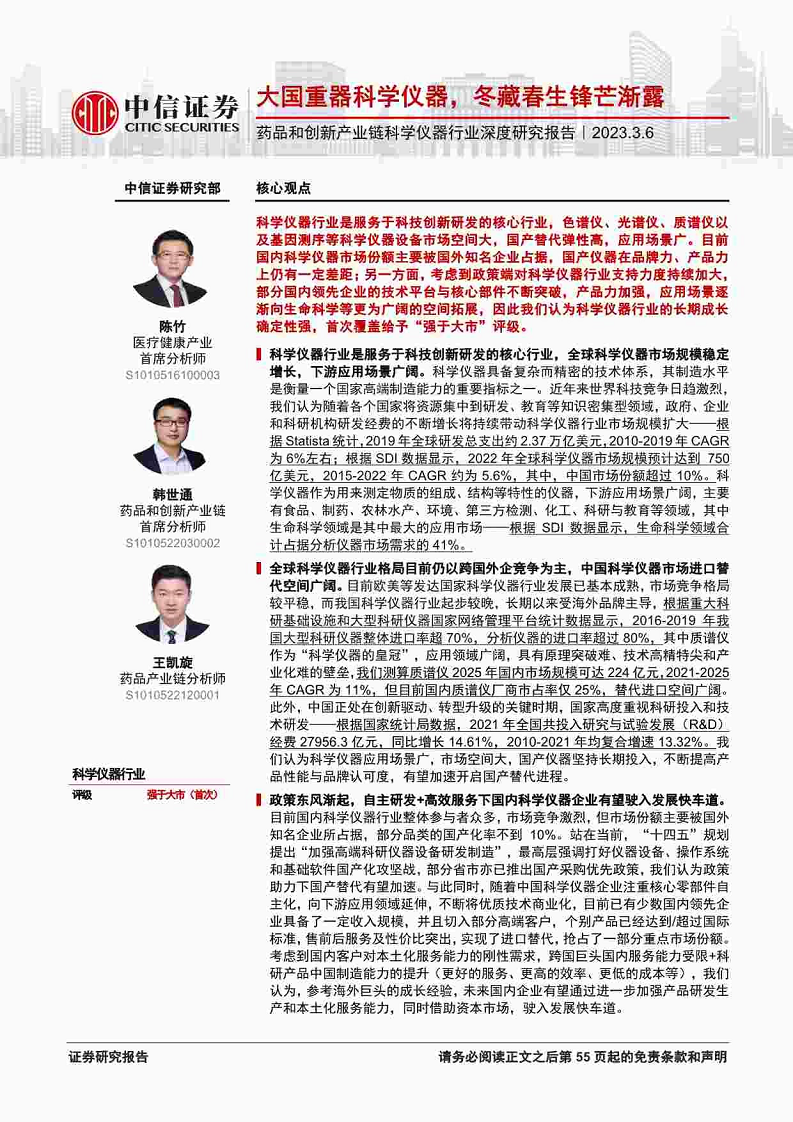 药品和创新产业链科学仪器行业深度研究报告:大国重器科学仪器,冬藏春生锋芒渐露