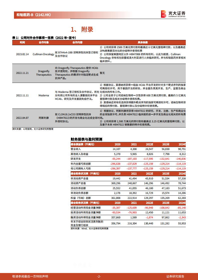 尽管公司目前仍处于亏损状态,预计2022年至2024年归母年内全面亏损总额分别为1.25亿美元、1.29亿美元和1.14亿美元,但其营业收入呈现显著增长趋势,预计2022年至2024年营业收入将分别达到2655万美元、5603万美元和9079万美元,年增长率分别为516.23%、111.06%和62.04%。这表明公司在商业拓展和产品授权方面取得了积极进展,有望在肿瘤领域快速打造出具有“同类首创”或“同类最佳”潜力的产品管线。市场对公司未来增长潜力持乐观态度,维持“买入”评级,但同时提示了研发进度、对外合作及竞争加剧等潜在风险。