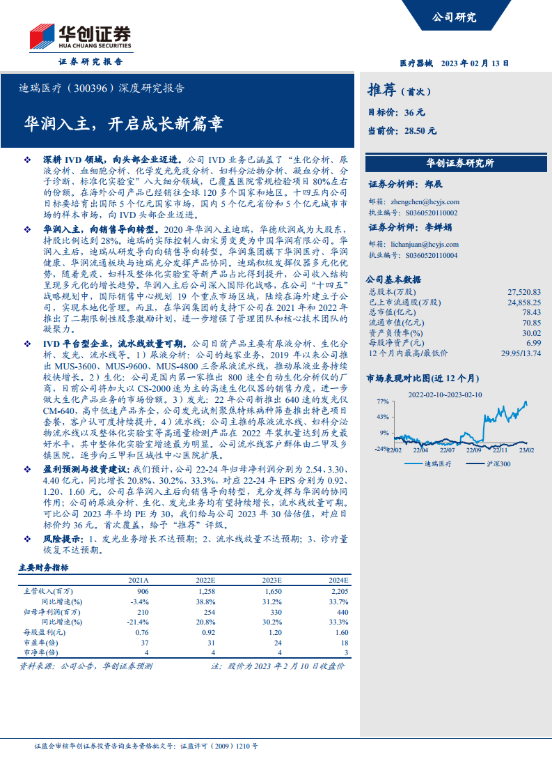 - 华润集团于2020年入主迪瑞医疗,使其从研发导向转型为销售导向。通过与华润医疗、华润健康、华润商业等板块的产业协同,公司销售体系得到显著增强,业务结构趋于多元化,并深入推进国际化战略。