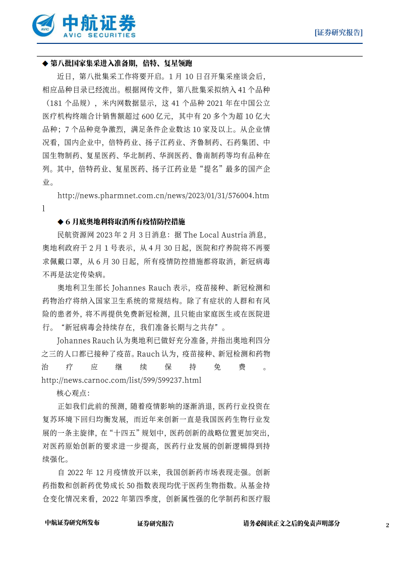 中航证券医药生物行业周报:行业景气度上行,创新药迎来春天
