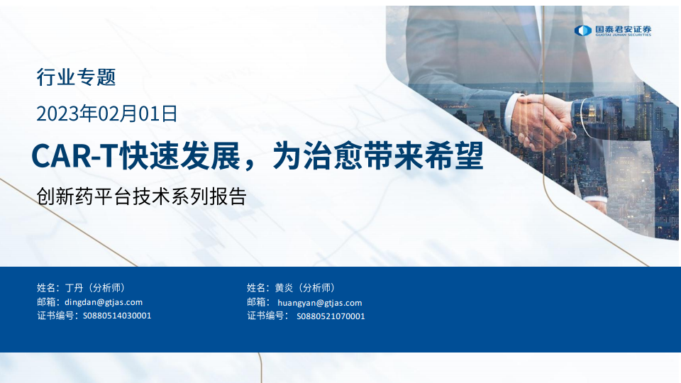 医药行业创新药平台技术系列报告:CAR-T快速发展,为治愈带来希望