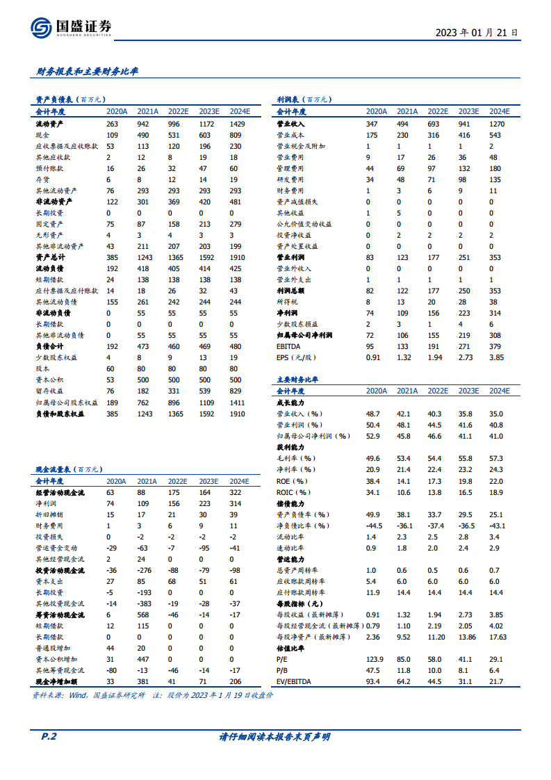 对应2022-2024年P/E分别为58x、41x、29x。与可比公司(百诚医药、泓博医药、康龙化成、和元生物)2023年平均估值50x相比,公司估值水平具有吸引力。 报告看好公司作为仿创结合的一站式药物研发服务平台,持续分享行业红利,并通过CRO+CDMO协同发展实现快速增长。首次覆盖,给予“买入”评级。