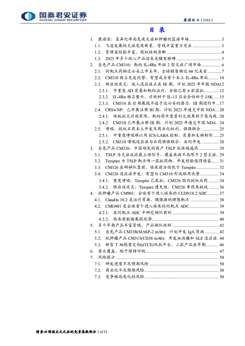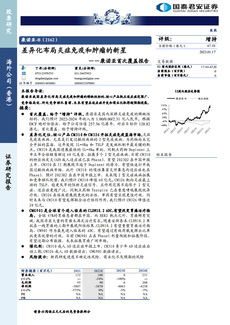 康诺亚-B-2162.HK-首次覆盖报告:差异化布局炎症免疫和肿瘤的新星