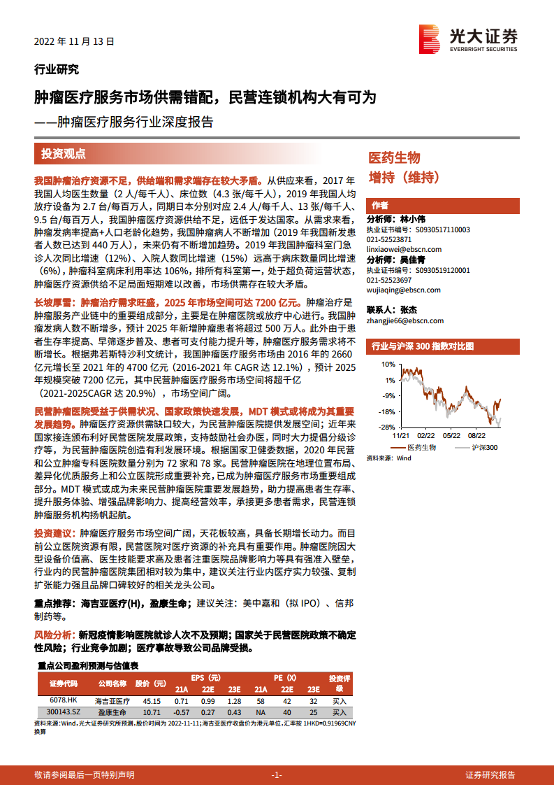 相关标的(民营肿瘤医疗服务领先企业)