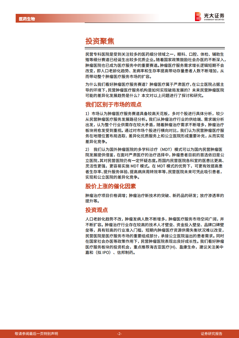 - 民营肿瘤医疗服务机构迎差异化发展: