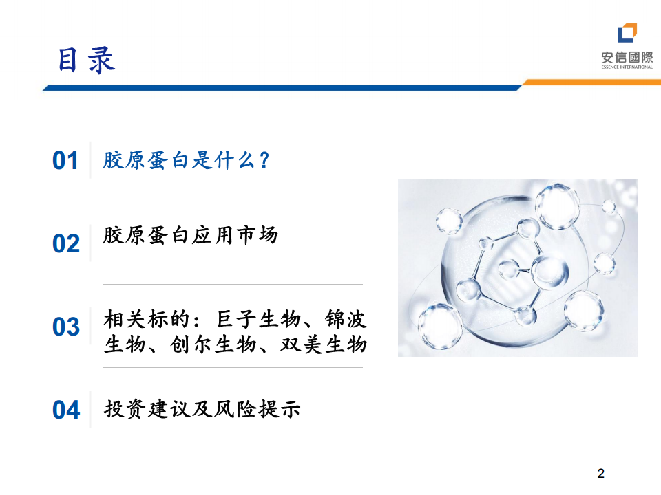 - 中国胶原蛋白市场规模快速增长:中国胶原蛋白市场规模增长迅速,其中重组胶原蛋白增速远超动物源胶原蛋白。