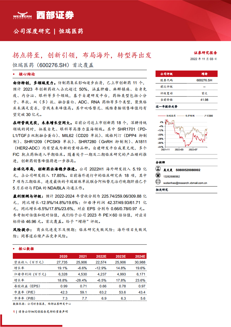 恒瑞医药(600276)首次覆盖:拐点将至,创新引领,布局海外,转型再出发