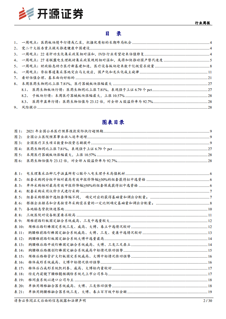 本报告深入分析了2022年10月医药生物行业的最新动态与投资机遇,明确指出在多重积极因素的推动下,医药板块有望迎来“慢牛”行情。核心驱动力包括:国家层面将“健康中国”建设置于优先战略地位,为行业发展提供长期政策保障;财政贴息贷款政策的落地,预计将为医疗设备领域释放数千亿级的市场需求,加速医疗新基建进程;以及IVD、电生理耗材和脊柱等高值耗材集采政策的温和化,有效缓解了市场对大幅降价的担忧,为相关子板块带来了估值修复空间。
